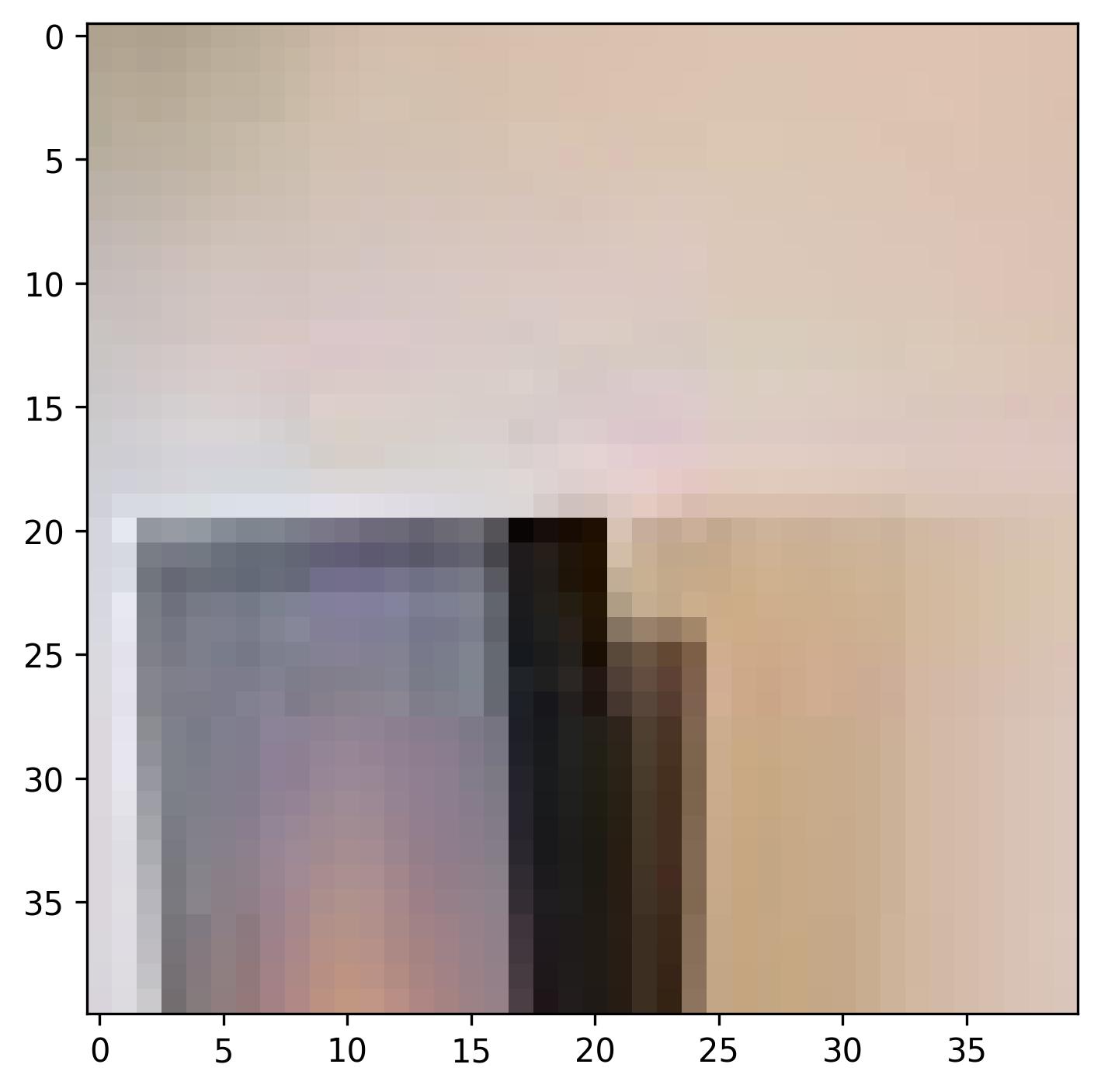 With these points now, our goal is to match points from the left image to the right image. To do this, we first need to extract features from each point. This is in the form of capturing a 40x40 pixel patch around each point. After capturing each patch, we want to sample the pixels in a lower frequency, resulting in a 8x8 pixel patch. The process of sampling is done with anti-aliasing enabled. After sampling from the patch, we then need to bias/gain normalize the patch to make the features invariant to affine changes in intensity. After extracting our normalized 8x8 pixel patch, we can flatten the patch to produce a descriptor vector for each point. Below are some figures to describe the process.