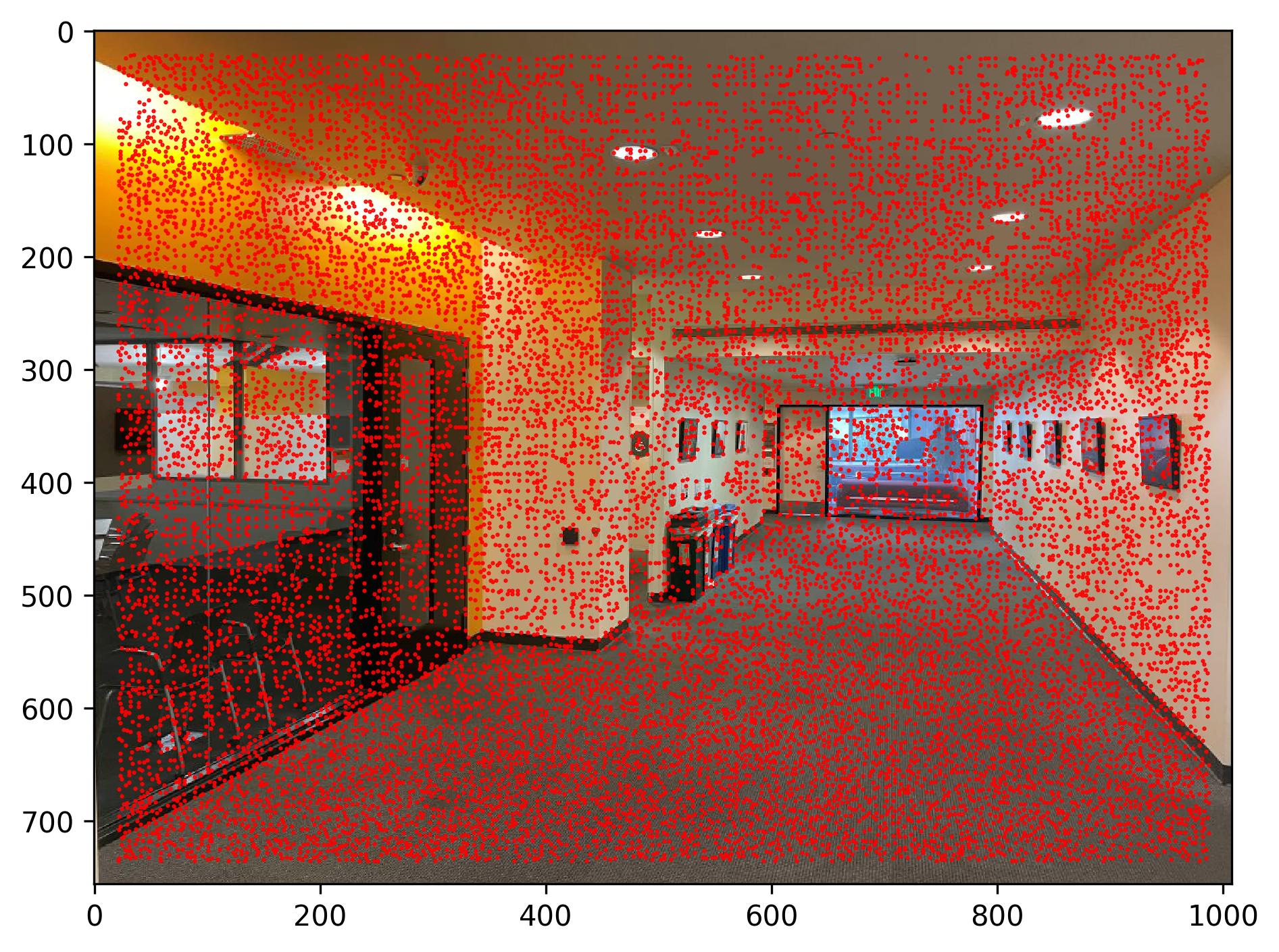 We will use a default value of $m = 100,000$ and $\epsilon = 3$. Below are the correspondence points after applying the RANSAC algorithm.